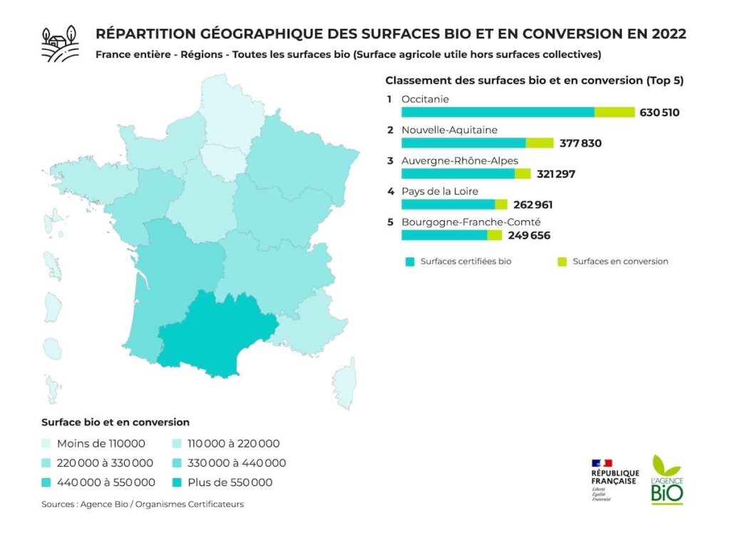 Avec un peu moins de trois millions d’hectares cultivés en bio en 2021, c’est-à-dire 10% de sa surface agricole, la France était leader du secteur au niveau européen devant l’Espagne, l’Italie et l’Allemagne. À côté des produits estampillés bio, une multiplicité d’indications sont apparues, à l’image de la certification «haute valeur environnementale» ou de la mention «local».