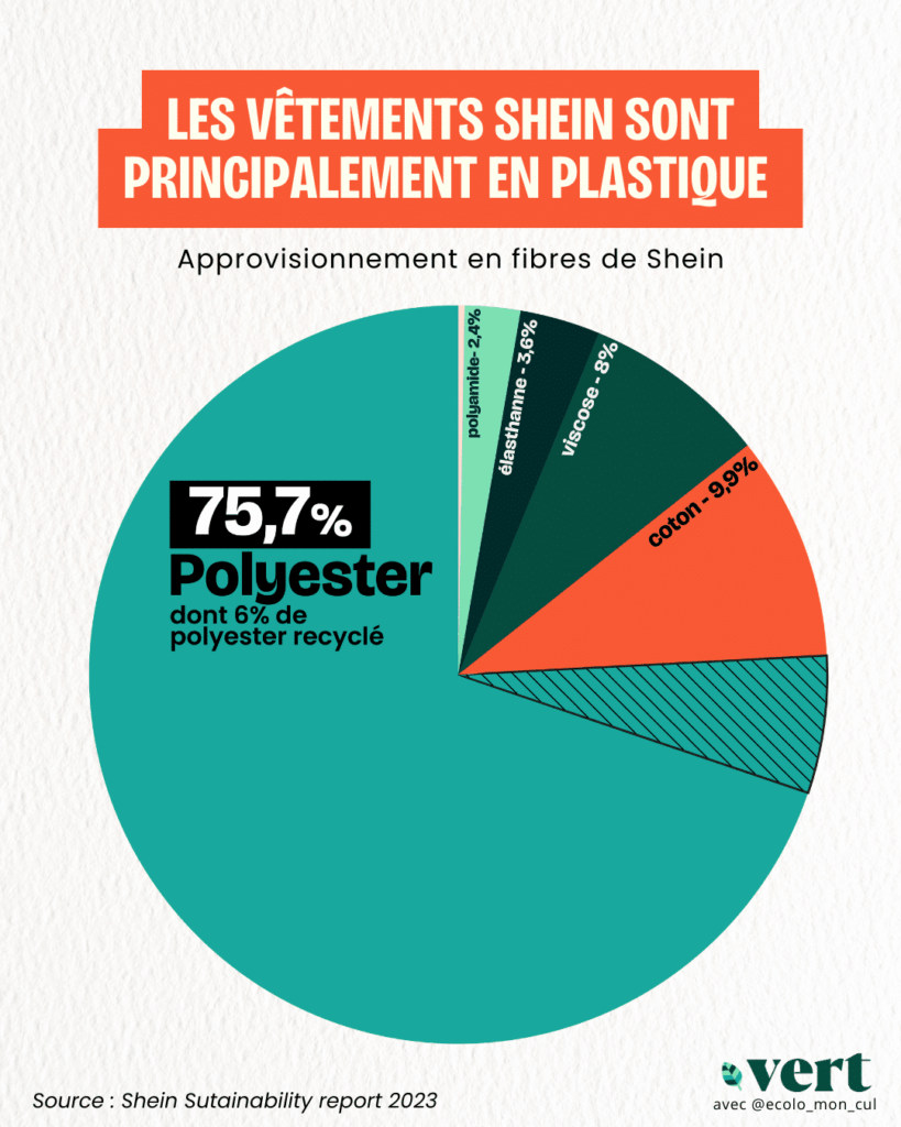 Ce polymère pourrait aussi contribuer au développement de certains cancers, de problèmes de fertilité, de maladies cardiaques, ou de cas d’alzheimer. Autrement dit, il faudrait éviter de mettre du plastique dans nos vêtements. De son côté, Shein dit atténuer son impact sur l’environnement… en intégrant une part croissante de fibres synthétiques recyclées dans son offre.