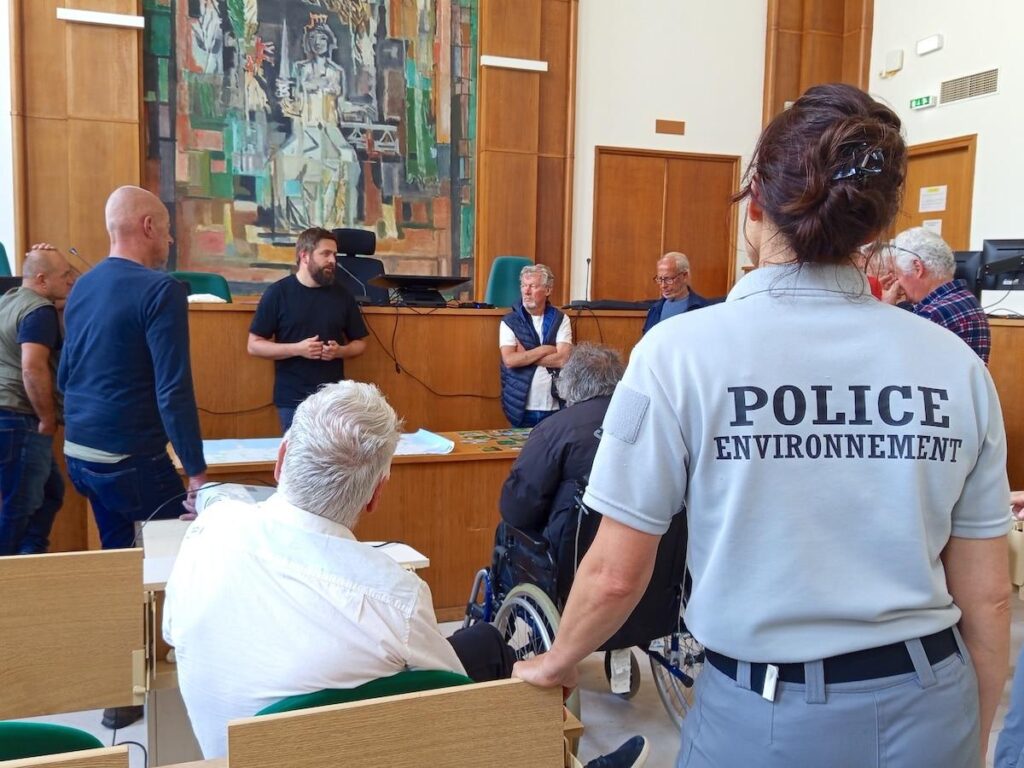 Sur la plage, la température dépasse les 30°C, mais la journée a commencé dans une ambiance glaciale. Dans la salle d’audience du tribunal judiciaire de Brest, alors que débute le stage, les visages sont fermés et les bras croisés. Accueillis par Solenn Briand, la substitut du procureur, les onze hommes se murent dans le silence le temps de sa présentation du fonctionnement de la justice. Quelques langues se délient, un peu forcées, lorsque les agentes de l’Office français de la biodiversité (OFB) Lisa Briot et Anne Royer, qui présentent leurs missions, les interrogent. Elles ont axé leur intervention sur les règles qui entourent la pêche à pied et sur les conséquences environnementales des dépôts sauvages, infractions pour lesquelles plusieurs participants sont poursuivis.