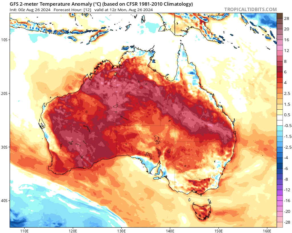 En cette fin août, dernier mois de l’hiver de l’hémisphère sud, l’Australie est éreintée par une canicule hivernale. Lundi 26 août, le thermomètre a affiché une valeur inédite de 41,6°C sur la côte nord-ouest du pays-continent, dépassant de 0,4°C le précédent record. Plusieurs régions australiennes ont connu des températures établies entre 10°C et 15°C au-delà des normales saisonnières sur plusieurs jours. Début 2024, le thermomètre avait déjà avoisiné les 50°C dans de nombreuses villes.