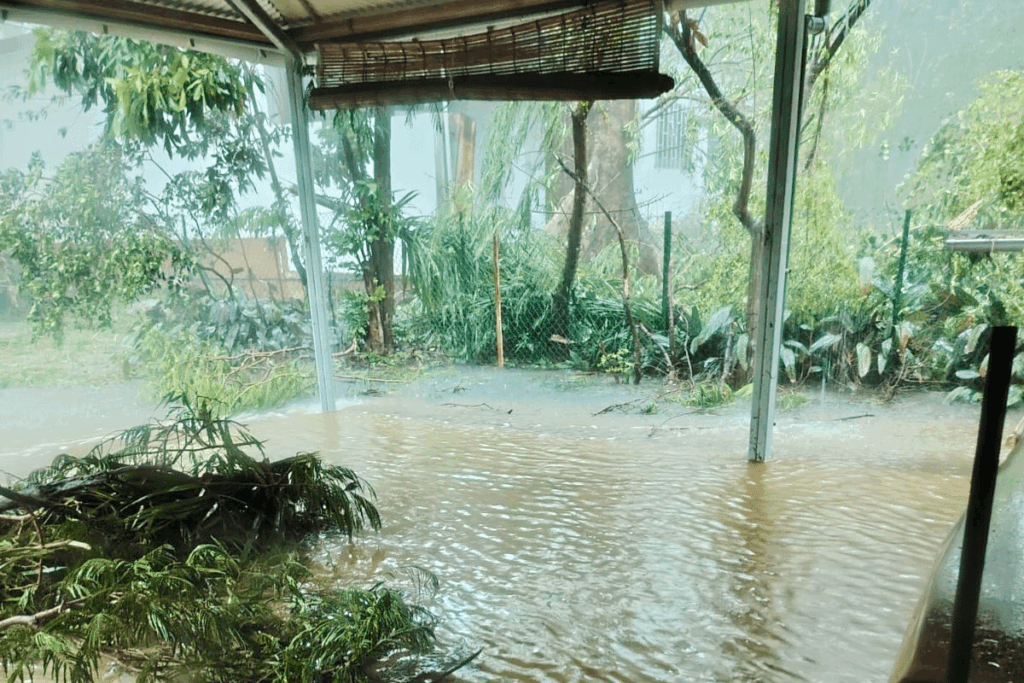 Sur les réseaux sociaux, de nombreux·ses internautes ont posté des images de leurs arbres arrachés, de toits envolés et de maisons inondées. La sous-préfecture de Saint-Benoît (à l’est) et les locaux du service départemental d’incendie et de secours (Sdis) ont été en partie inondés.