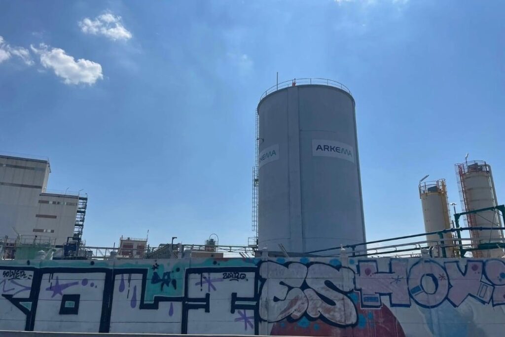 L’usine Arkema, où sont fabriqués des polymères fluorés, à Oullins-Pierre-Bénite, au sud de Lyon. © Juliette Ossola/Vert