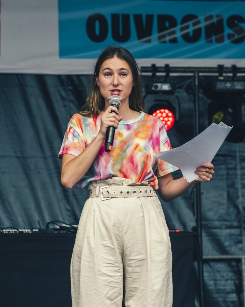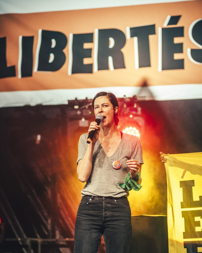 Sur scène, une foule de personnalités se sont relayées au micro, parmi lesquelles l’activiste Camille Etienne, les actrices Anna Mouglalis et Judith Godrèche, la réalisatrice Alice Diop, les comédien·nes Aymeric Lompret et Doully, les journalistes Nassira El Moaddem ou Edwy Plenel.