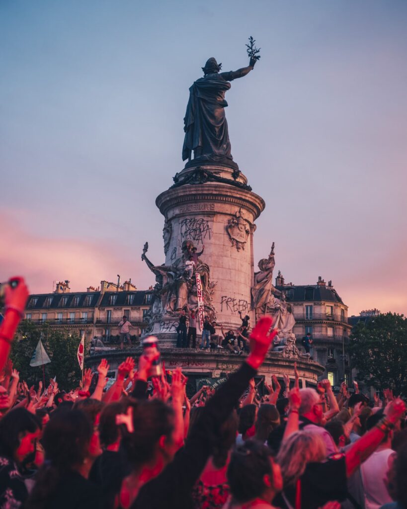 Jeudi 27 juin, sur la place de la République à Paris, environ 10 000 personnes et de nombreuses personnalités telles que Judith Godrèche et Alice Diop, ont répondu présentes à l’appel lancé par une centaine de médias (dont Vert), associations et syndicats pour défendre les libertés contre le Rassemblement national et soutenir une presse indépendante et unie. Reportage photos.