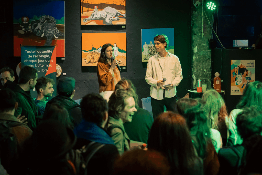 Puis les fondateur·ices, Juliette Quef et Loup Espargilière, ont raconté la genèse de Vert, les projets à venir pour cette cinquième année et notre mot d’ordre : raconter les crises écologiques et les solutions pour en sortir de manière simple et funky. Rien que ça !