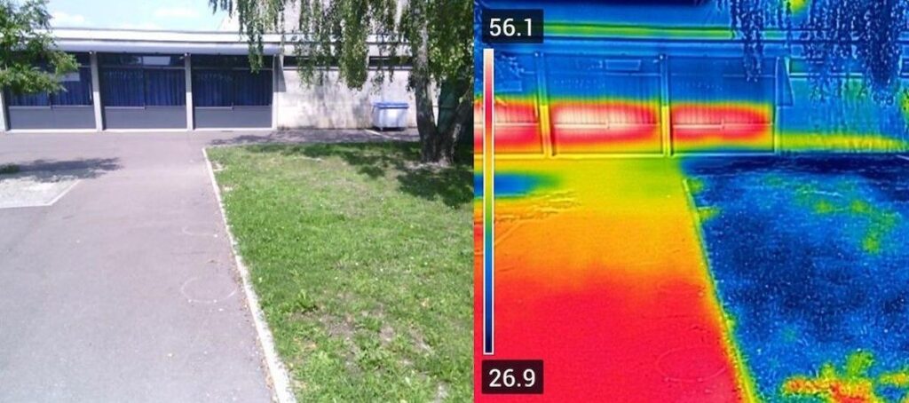 Différences de températures entre des surfaces artificialisées et non artificialisées. ©Antonin Montané